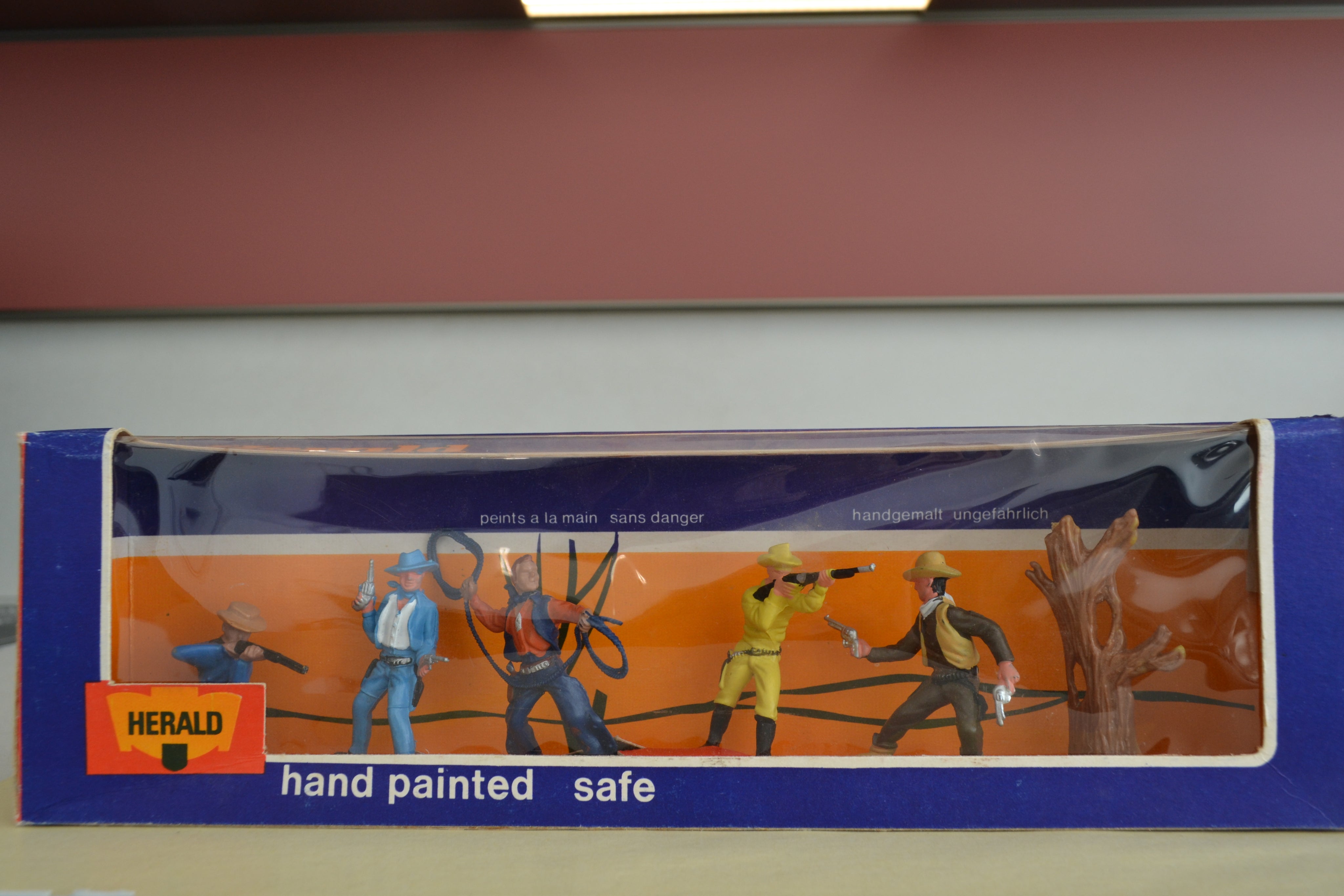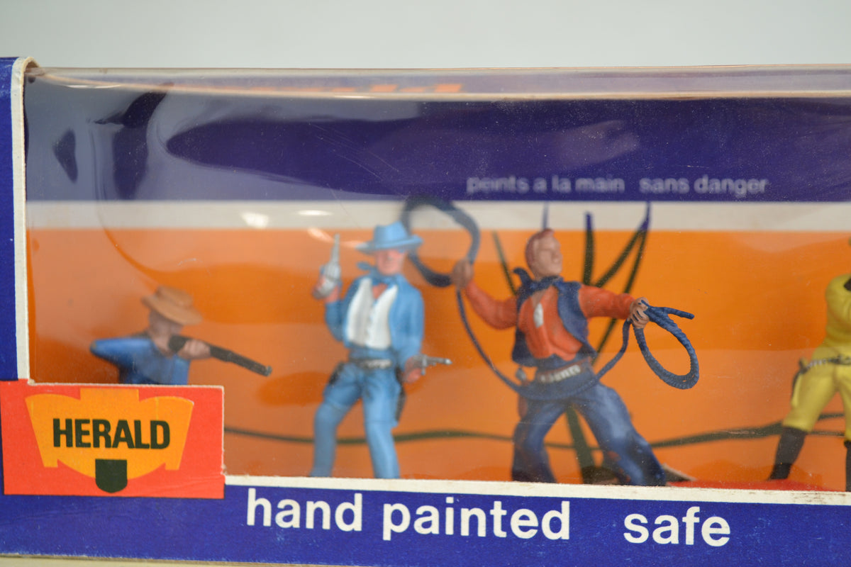 Boxed set of cowboys from the Herald range. Figures in excellent condition, box is good with perspex intact. Quite a rare item.