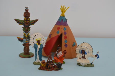 Comprises of Teepee, Totem pole, standing chief, squaw with baby, sitting chief and fire... fair to good condition