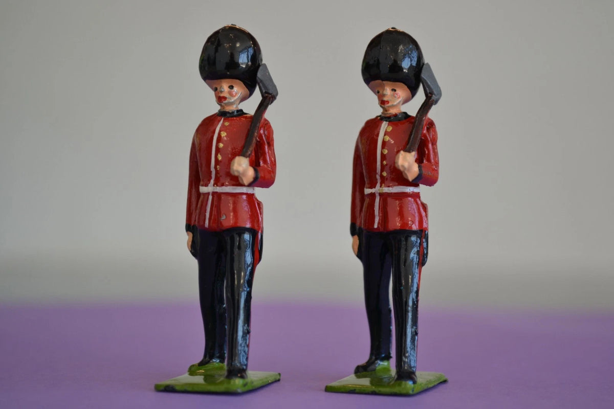 Wonderful pair of Scots Guards Pioneers, stamped with "Depose", indicating possible Britains Paris Office output or moulds.