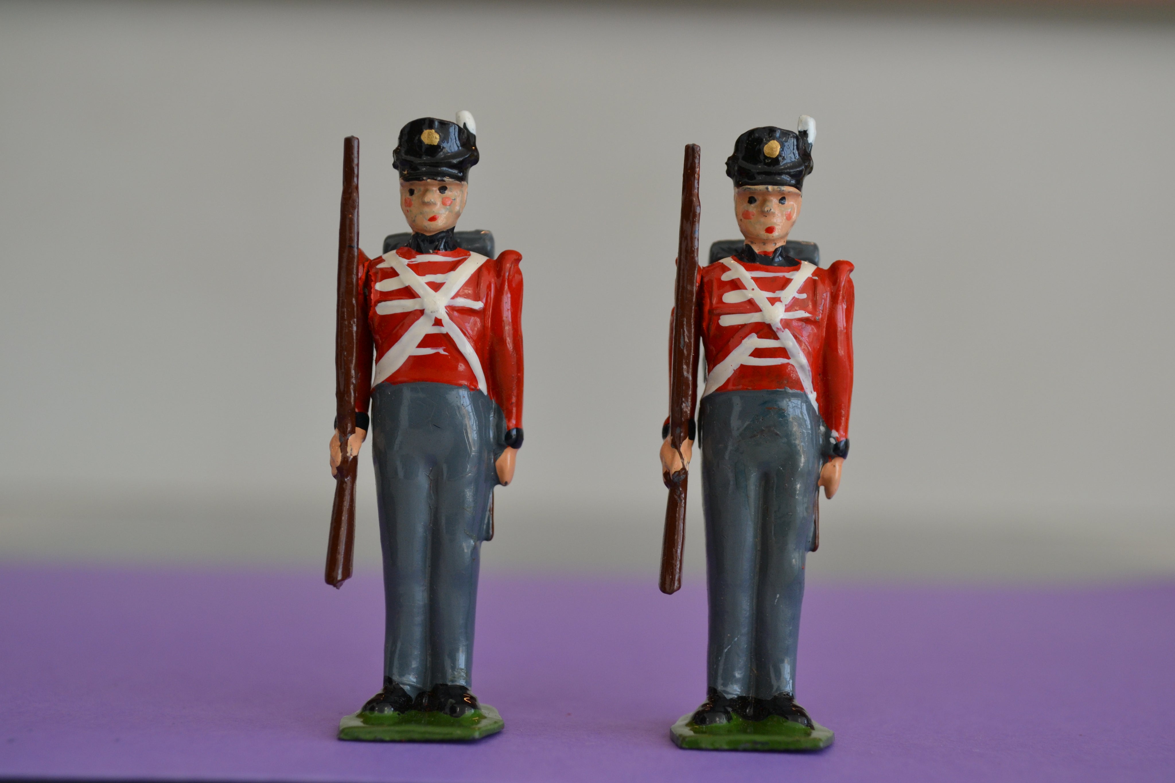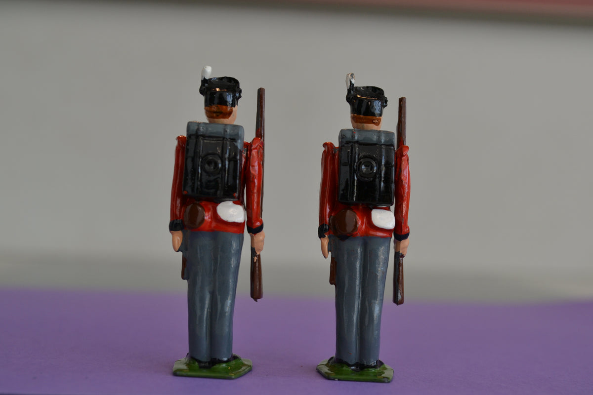 Wonderful pair of 1815 British Infantrymen from Britains. From set 1518, these figures were made in the 1950s. Good condition.