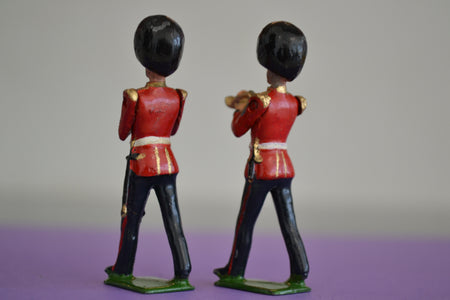 Nice pair of vintage Britains Guards Band flute and cornet players, Coldstream Guards. Fair condition.