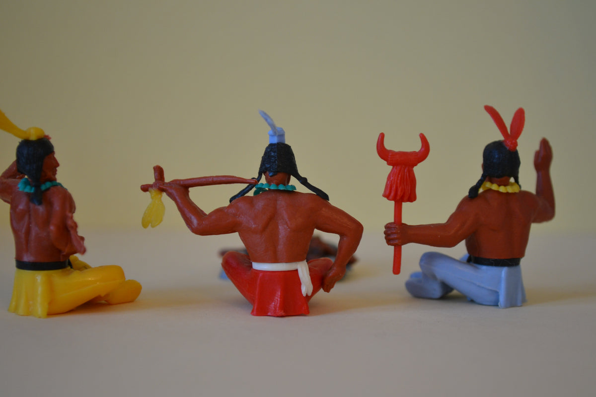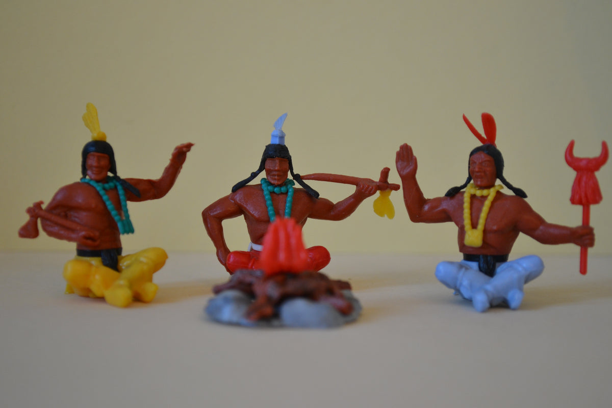 Timpo Indian braves around a campfire. Good condition.