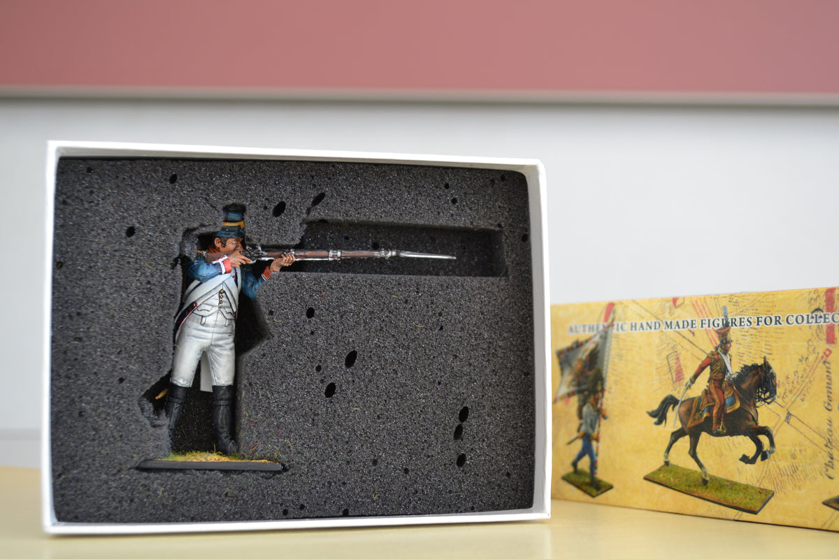 A stunning French 18th Line Infantry Voltigeur in original box from First Legion's Napoleonic range. Fabulous condition.