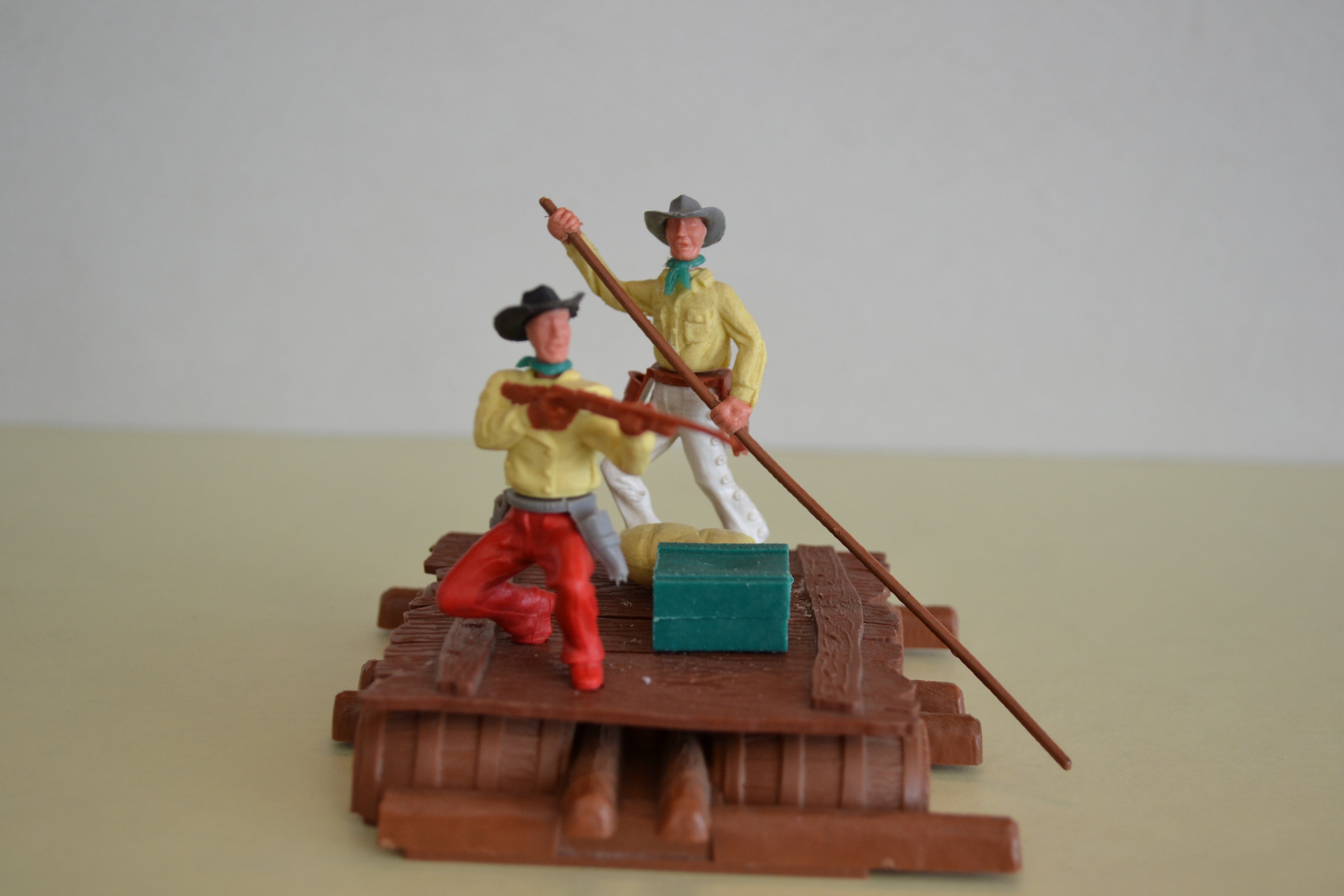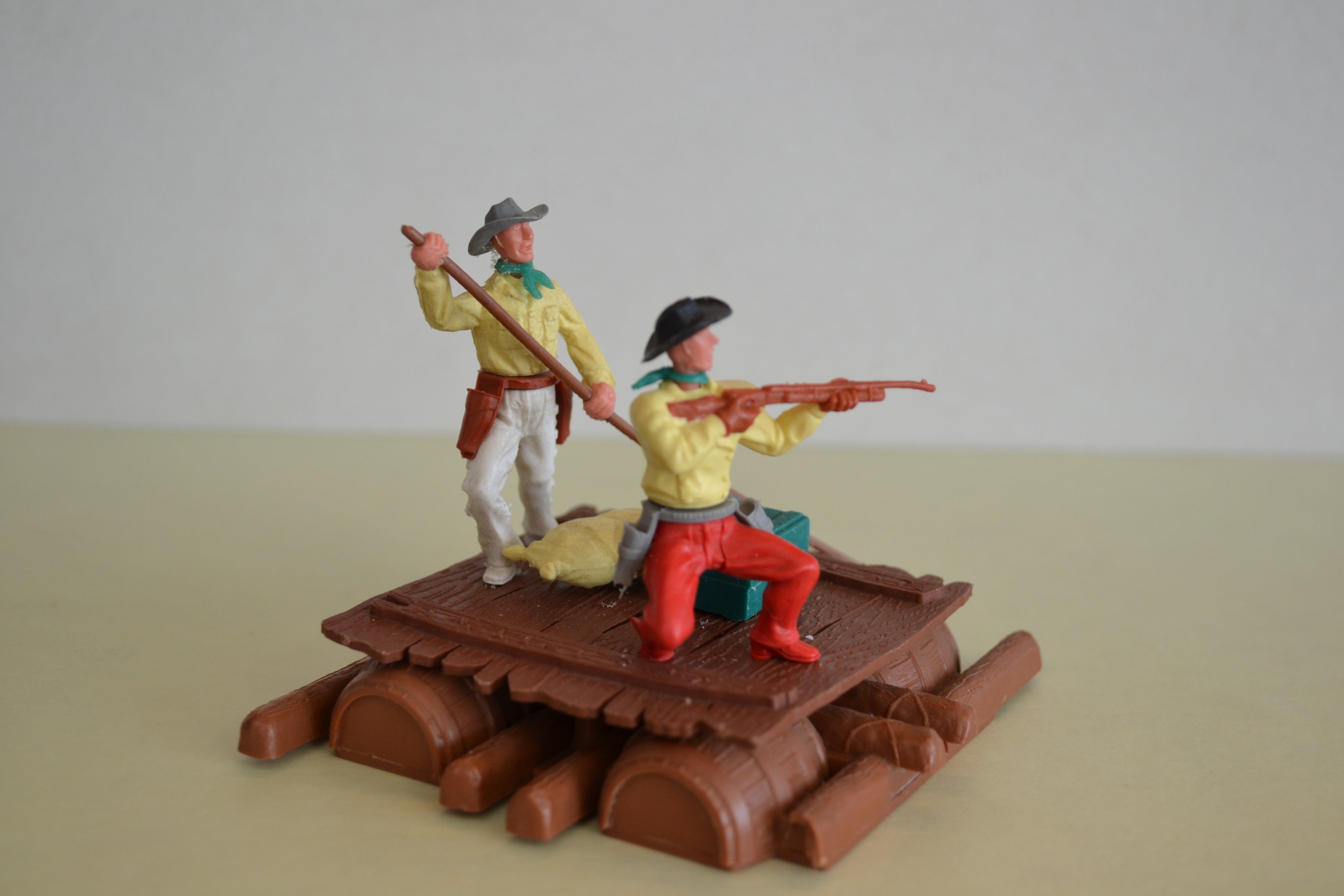Fantastic raft and two cowboys with accessories from Timpo. Condition good.